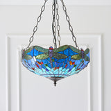 Tiffany Style Blue Medium Inverted 3 Light Pendant (0711DRA64075)