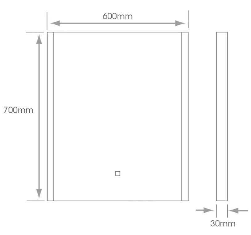 - 600mm (w) x 700mm (h) x 30mm (d)