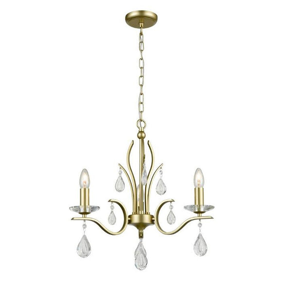 Willow 3 Light Chandelier in Matt Gold with crystal glass droplets (0194WILFL23843)