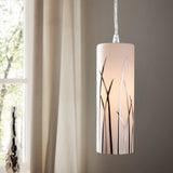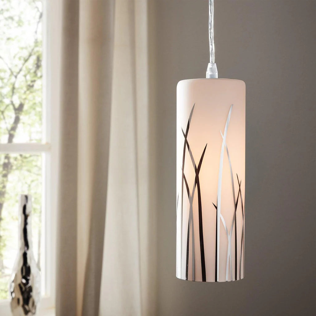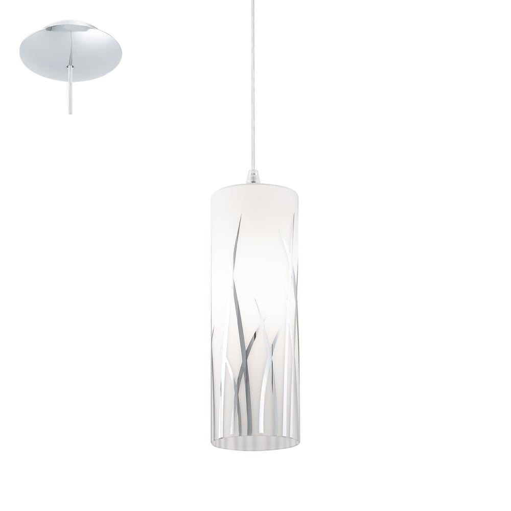 A white and polished chrome grass patterned glass pendant with polished chrome finish. This simple yet attractive light is great for providing ambient lighting to your living space, neutral enough to blend with the majority of interior decor yet stylish in its own right.